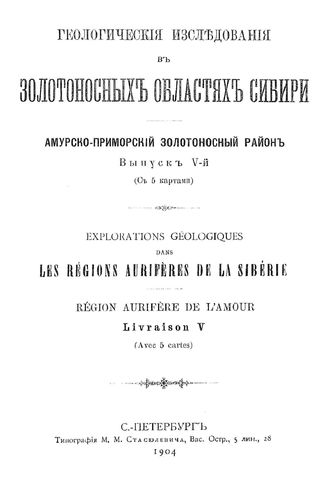 Геологические исследования в золотоносных областях Сибири. Амурско-Приморский золотоносный район. Вып. 5. - СПб., 1904.