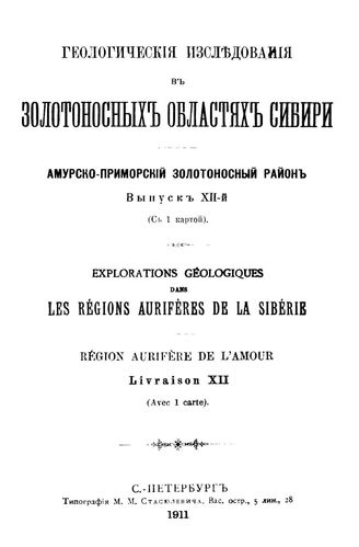 Геологические исследования в золотоносных областях Сибири. Амурско-Приморский золотоносный район. Вып. 12. - СПб., 1911.