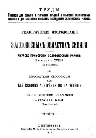 Макеров Я.А. Геологические исследования в золотоносных областях Сибири. Амурско-Приморский золотоносный район. Вып. 18 : Геологические исследования в верховьях рек Б. Чичатки, Уркана, Уруши и Нюкжи. - СПб., 1913.