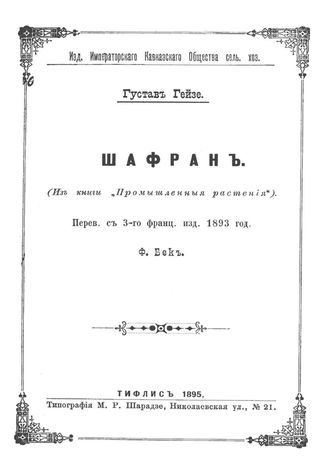 Гейзе, Густав. Шафран. (из книги "Промышленные растения") : перев. с 3-го франц. изд. 1893 год. / Ф. Бек, 1895. - 23.