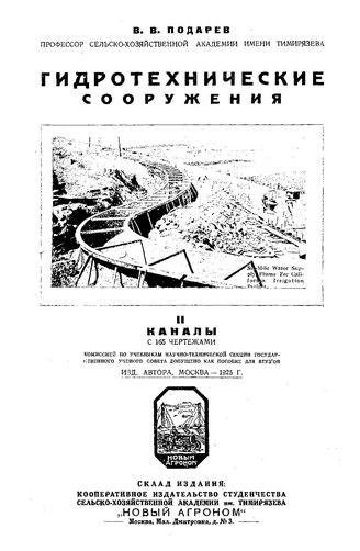 Подарев В. В. Гидротехнические сооружения : комиссией по учебникам научно-технической секции государственного ученого совета допущено как пособие для ВТУЗ'ов. II Каналы / В. В. Подарев, 1925. - 84.