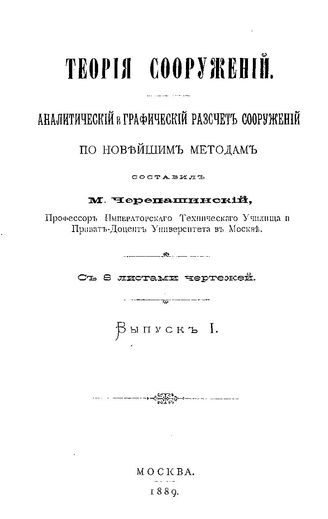 Черепашинский М. Теория сооружений. Аналитический и графический расчет сооружений по новейшим методам. Выпуск I / М. Черепашинский. - 234.