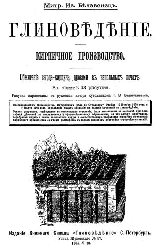 Белавенец М.И. Глиноведение. Кирпичное производство. Петербургский способ формования сырца для строительного кирпича / М. И. Белавенец, 1905. - 47 с.