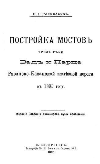 Голиневич Н. И. Постройка мостов через реки Вад и Парца Рязанско-Казанской железной дороги в 1893 году. - СПб., 1895.