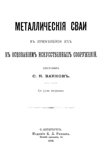 Металлические сваи в применении их к основаниям искусственных сооружений / сост. С. Н. Ванков, 1898. - 84 с.