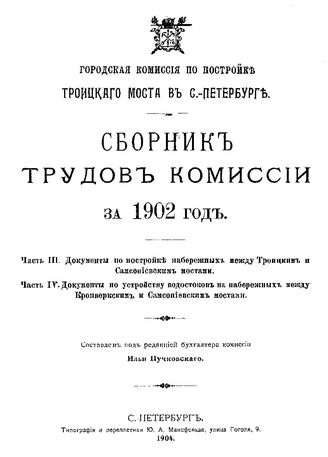 Ч. 3. Документы по постройке набережных между Троицким и Самсониевским мостами, Ч. 4. Документы по устройству водостоков на набережных между Кронверкским И Самсониевским мостами. - СПб., 19.