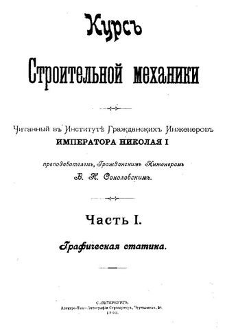 Курс строительной механики В. Н. Соколовский. Ч. 1 : Графическая статика. - СПб., 1902.