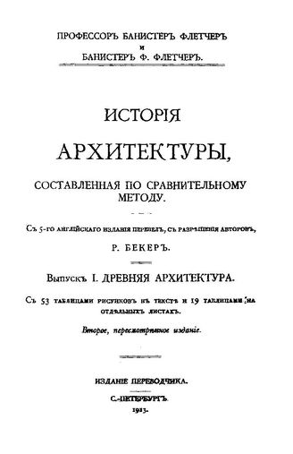 История архитектуры, составленная по сравнительному методу : с 5-го англ. изд. перевел, с разрешения авт. Р. Бекер / Б. Флетчер, Б. Ф. Флетчер. Вып. 1 : Древняя архитектура, 1913. - 14 c. с.