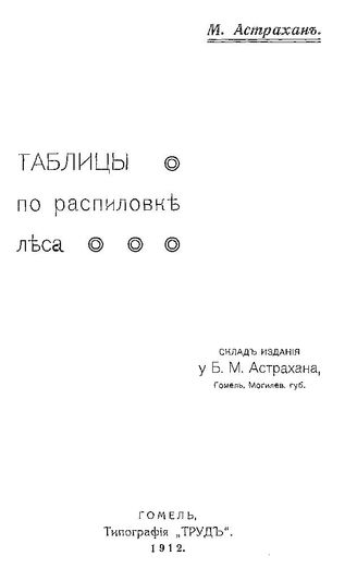 Астрахан М. Таблицы по распиловке леса. - Гомель, 1912.