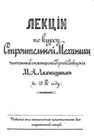 Лекции по курсу строительной механике, читанные инженером путей сообщения М. А. Ляхницким в 1893/94 году