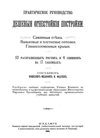 Фадеев Н. Дешевые огнестойкие постройки. - СПб., 1904.
