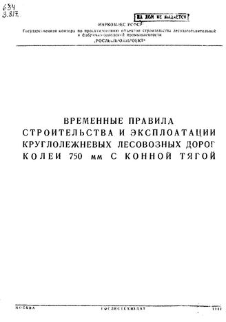 Временные правила строительства и эксплуатации круглолежневых лесовозных дорог колеи 750 мм с конной тягой, 1942. - 21 с.