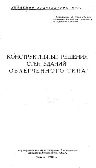 Конструктивные решения стен зданий облегченного типа. - Чимкент, 1942.