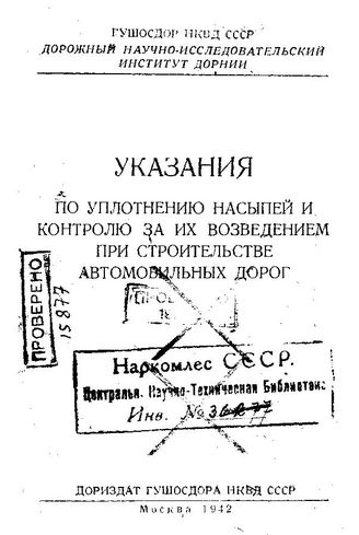 Указания по уплотнению насыпей и контролю за их возведением при строительстве автомобильных дорог / Дорожный НИИ, 1942. - 48 с.