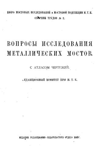 Труды Мостовой подсекции и Бюро мостовых исследований. Сб. 3 : Вопросы исследования металлических мостов. - Петроград, 1923.