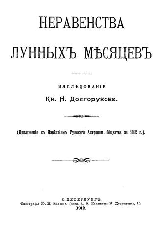 Неравенства лунных месяцев : прил. к Известия Рус. астроном. о-ва за 1912 г / исследование Н. Долгорукова, 1912. - 76 с.