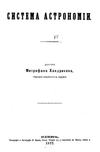 Хандриков М. Система астрономии / М. Хандриков, 1877. - 427 с.