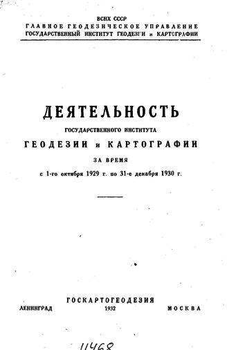Деятельность государственного института геодезии и картографии за время с 1-го октября 1929 г. по 31-е декабря 1930 г.. - Л., 1932.