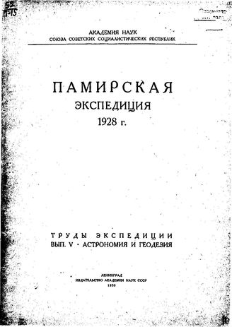 Памирская экспедиция 1928г. : астрономия и геодезия / труды экспедиции, 1930. - 69.