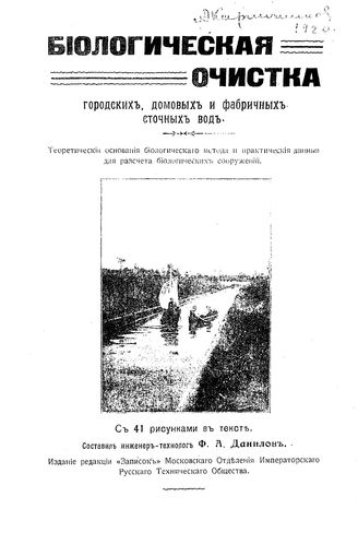 Данилов Ф.А. Биологическая очистка городских, домовых и фабричных сточных вод. - М., 1908.