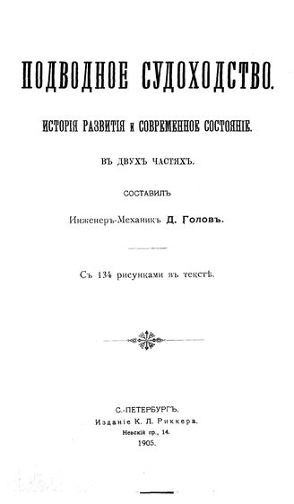 Подводное судоходство. История развития и современное состояние / сост. Д. Голов, 1905. - 412 с.