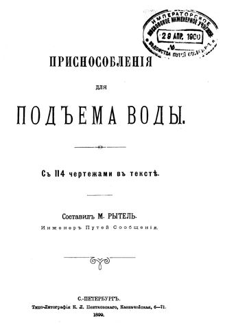 Рытель М. Приспособления для подъема воды. - СПб., 1899.