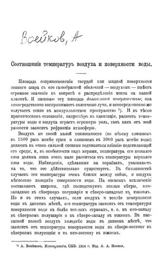 Воейков А. Соотношение температур воздуха и поверхности воды. - СПб., 1908.