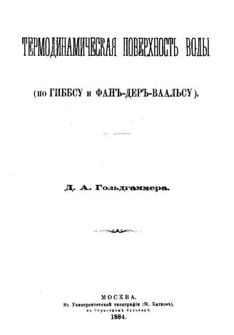 Гольдгаммер Д.А. Термодинамическая поверхность воды (по Гиббсу и Фан-дер-Ваальсу). - М., 1884.