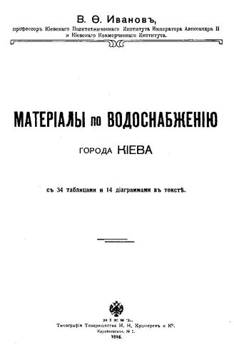 Иванов В.Ф. Материалы по водоснабжению города Киева / В. Ф. Иванов, 1916. - 80 с.