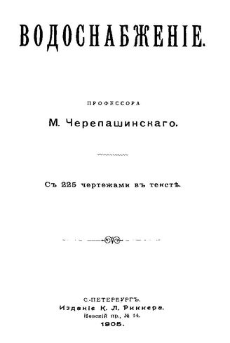 Черепашинский М. Водоснабжение / М. Черепашинский, 1905. - 313 с.