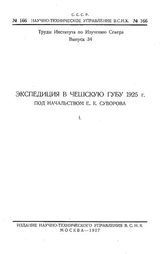 Труды института по изучению севера. выпуск 34. Экспедиция в чешкую губу 1925 г. под начальством Е.К. Суворова. - , .