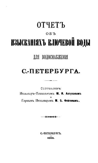 Отчет об изысканиях ключевой воды для водоснабжения С-Петербурга. - СПб., 1898.