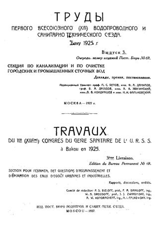 Труды первого Всесоюзного (XIII) водопроводного и санитарно-технического съезда в г. Баку 1925 г. Всесоюзный водопроводный и санитарно-технический съезд (1(13) ; 1925 ; Баку). Вып. 3. - М., 1927.