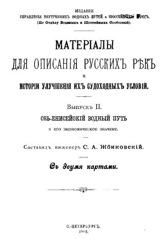 Материалы для описания русских рек и истории улучшения их судоходных условий. - (Издание Управления внутренних водных путей и шоссейных дорог). Вып. 2 : Обь-Енисейский водный путь и его экономическое значение, 1903. - 37 с.
