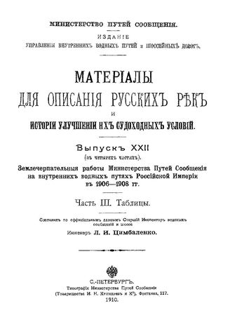 Материалы для описания русских рек и истории улучшения их судоходных условий Россия. М-во путей сообщения. Вып. 22 : Землечерпательные работы Министерства путей сообщения на внутренних водных путях Российской империи в 1906-1908 гг., Ч. 3.. - СП...
