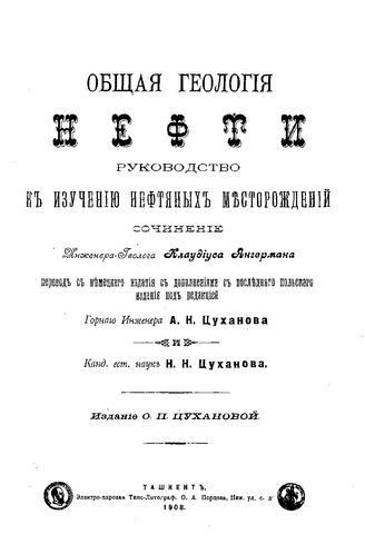 Ангерман К., Цуханов А. Н., Цуханов Н. Н. Общая геология нефти. - Ташкент, 1908.