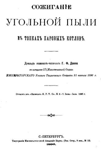 Депп Г.Ф. Сжигание угольной пыли в топках паровых котлов. - , 1896.