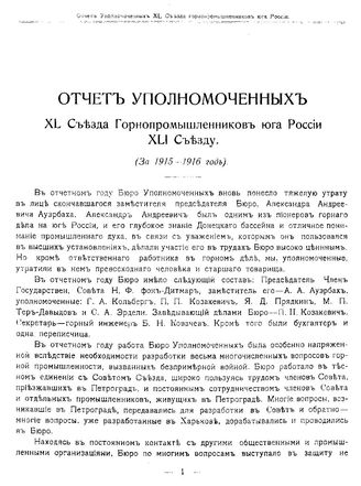 Отчет уполномоченных XL Съезда Горнопромышленников юга России XLI Съезду. - , 1917.