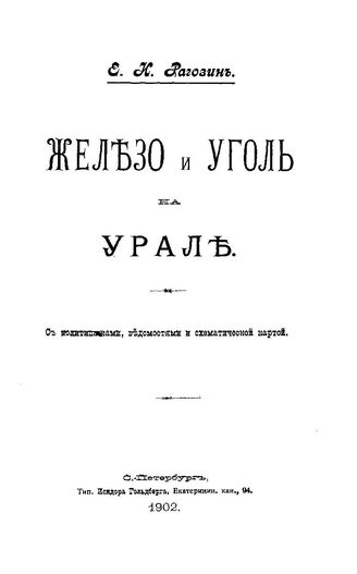 Рагозин Е. И. Железо и уголь на Урале. - СПб., 1902.