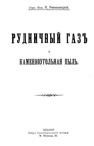 Ржонсницкий К. Рудничный газ и каменноугольная пыль. - СПб., 1898.