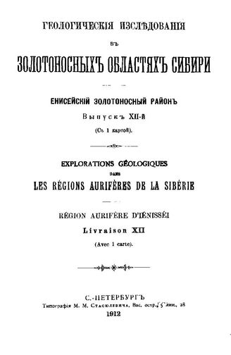 Геологические исследования в золотоносных областях Сибири. Енисейский золотоносный район. Вып. 12