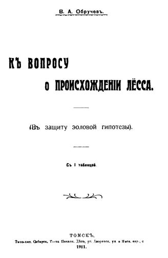 Обручев В. А. К вопросу о происхождении лёсса. (В защиту эоловой гипотезы) / В. А. Обручев, 1911. - 38 с.
