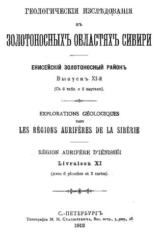 Геологические исследования в золотоносных областях Сибири. Енисейский золотоносный район. Вып. 11. - СПб., 1912.