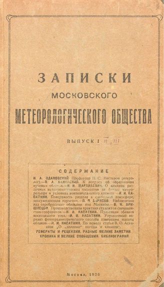 Записки Московского метеорологического общества. Вып. 1, Вып. 2, Вып. 3, 19. - 39 73, 96 с.
