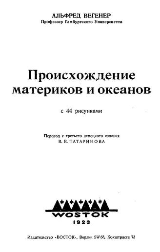 Вегенер А. Происхождение материков и океанов / А. Вегенер, 1923. - 158 с.