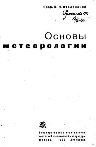 Оболенский В.Н. Основы метеорологии. - М., 1933.