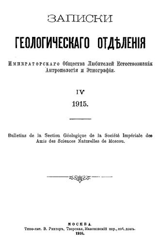 Записки Геологического отделения Императорского общества любителей естествознания, антропологии и этнографии. 4 : 1916. - М., 1916.