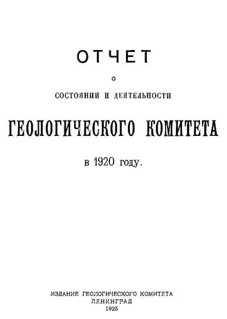 Отчет о состоянии и деятельности Геологического комитета Геологический ком. (Ленинград). за 1920 год. - Л., 1925.