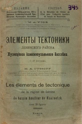 Усов М.А. Элементы тектоники ленинского района Кузнецкого каменноугольного бассейна / М. А. Усов, 1921. - 59.
