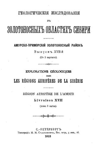 Анерт Э.Э. Геологические исследования в золотоносных областях Сибири. Амурско-Приморский золотоносный район. Вып. 17 : Краткий геологический очерк Приамурья. - СПб., 1913.